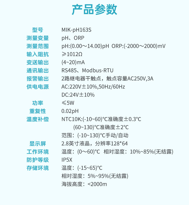 適用場合:紡織印染、工業(yè)廢水、自來水廠、污水處理廠、電鍍廢水等液體PH測量。 MIK-PH163儀表實(shí)現(xiàn)4-20mA信號輸出、繼電器報警輸出以及RS485通訊,搭配PH上位機(jī)軟件,可實(shí)現(xiàn)對多臺PH控制器聯(lián)機(jī)進(jìn)行系統(tǒng)性監(jiān)控的功能。