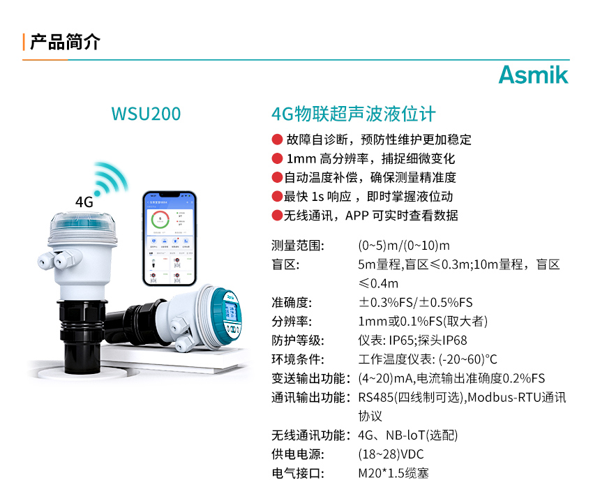 米科 WSU200 4G物聯超聲波液位計一體式無線通訊