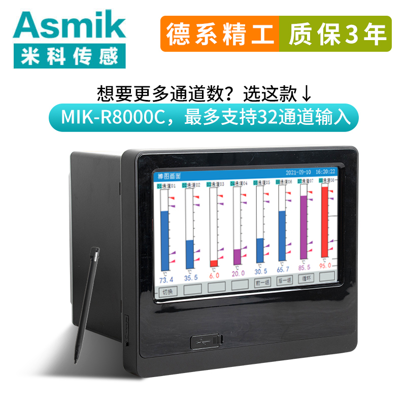 米科MIK-R8000A無紙記錄儀1~24通道數據記錄儀 0.5s采集 全觸摸屏