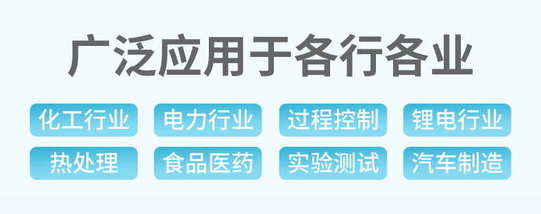 適用場(chǎng)合:本產(chǎn)品為工業(yè)無(wú)紙記錄儀,配置分辨率為 1024*600 的 7 英寸 TFT真彩全視角液晶顯示屏。可以接入電流、電壓、熱電偶、熱電阻、電阻和頻率(定制)等多種類型工業(yè)標(biāo)準(zhǔn)信號(hào),實(shí)現(xiàn)溫度、濕度、壓力、液位、流量的顯示、記錄、超限監(jiān)控、報(bào)表、數(shù)據(jù)通訊、信號(hào)變送以及流量累積、流量溫壓補(bǔ)償?shù)裙δ堋?蓱?yīng)用于冶金、石油、化工、建材、造紙、電力、食品、制藥、工業(yè)水處理等行業(yè)。