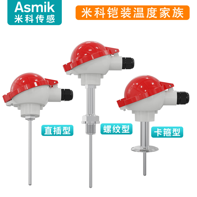 適用場合:米科鎧裝溫度傳感器可以直接測量各種生產過程中液體,蒸汽和氣體介質以及固體表面的溫度,通常和顯示儀表、記錄儀表等配套使用。